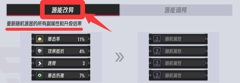 重新分配目前显示的副词条属性:比如下图,有可能会变成17%红色暴击伤害