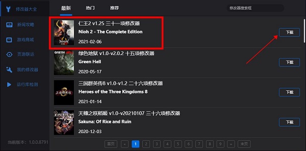 4、该程序汇集了风灵月影全部的修改器,此时,我们只需选择“仁王2 v1.25 三十一项修改器”下载便可。