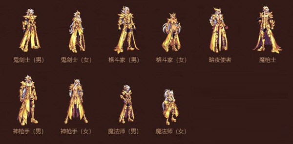 职业:男女枪手,男女鬼剑士,男女格斗家,男女魔法师,圣职者,暗夜使者,守护者,魔枪士