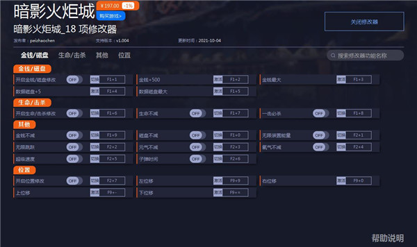 暗影火炬城十八项修改器说明